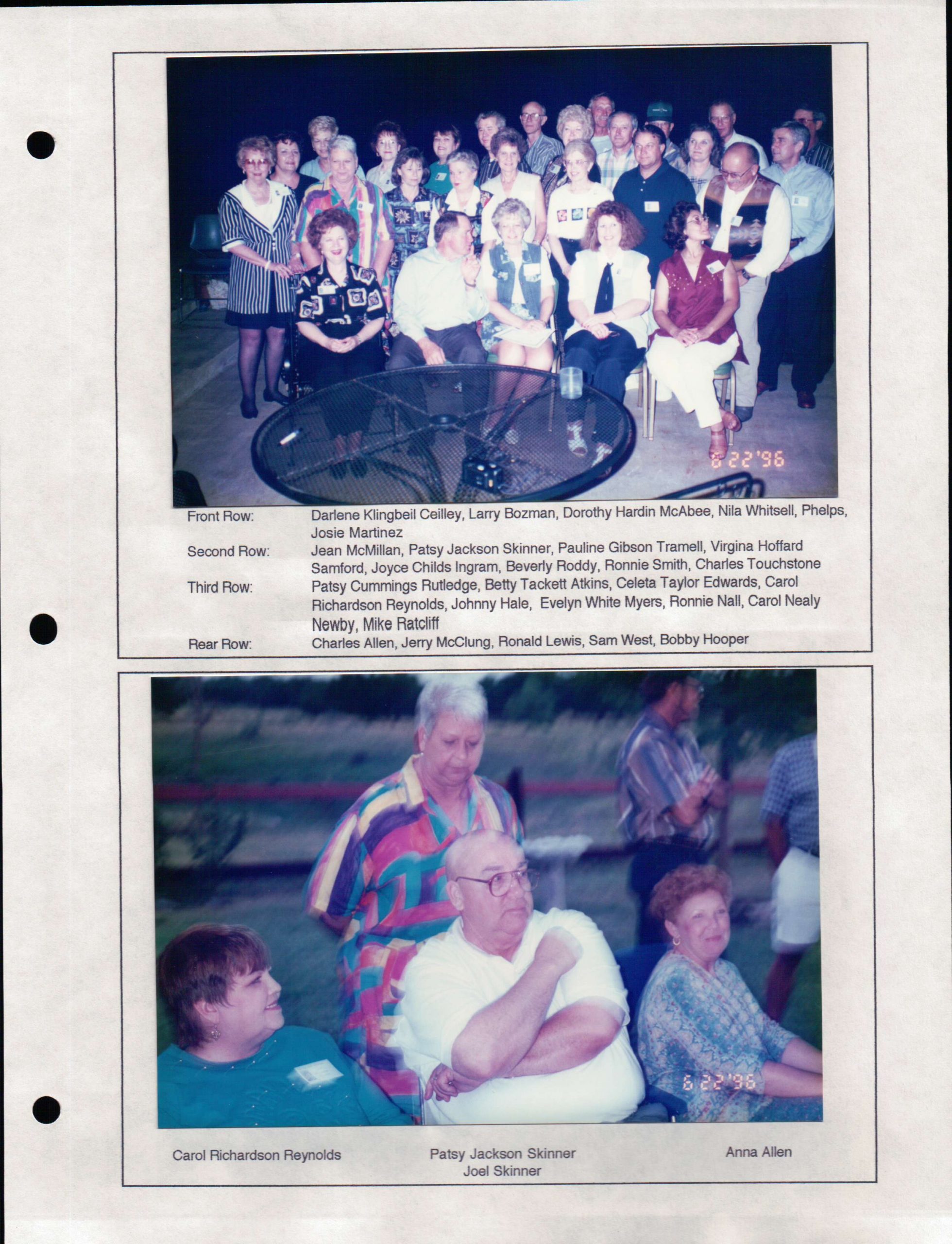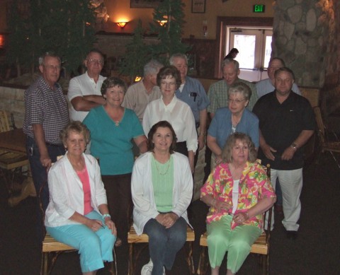 Back Row: Doris Ward Smith, Ronnie Smith, Carolyn Moss Nall, Betty Lou Tackett Atkins, Pat Cummings Rutledge, Betty Nan Self Watkins, Mike Ratcliff, Anna Rivers Allen, Bobby Hooper, Ann Hooper